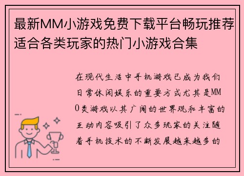 最新MM小游戏免费下载平台畅玩推荐适合各类玩家的热门小游戏合集